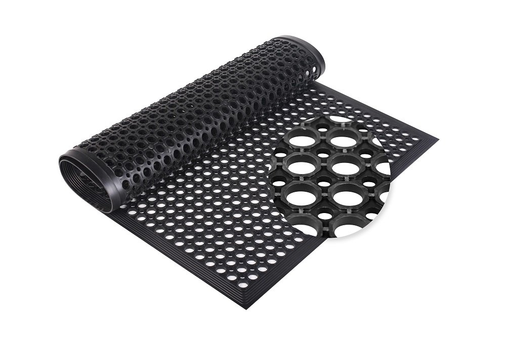1.This heavy‑duty rubber drainage mat is made of premium rubber,built for long‑lasting use in high‑traffic commercial and indoor/outdoor spaces. It is durable, crack‑resistant, and stays firmly in place without curling or fading, ideal for restaurants, kitchens, bars, workshops, warehouses and entryways.
